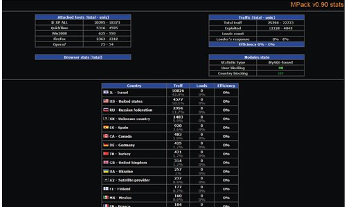 MPack kit owners are provided with an administrative interface to launch their attacks, usually by the same drive-by exploits utilized by Storm. Further, the interface keeps the statistics on both viewers of an infected web page and the successful attacks it carried on. It somehow gives satisfaction to the user for purchasing the malware kit, not to mention the support services and “additional arsenal” that can make a novice a force to reckon with.