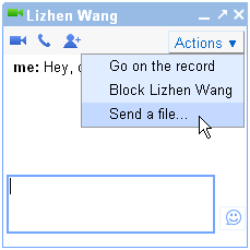 So, if you want to transfer file to a friend, you don’t have to send them an email again. Just start a chat session, click on the “Send a file” option from the Actions menu and then start sending the file.